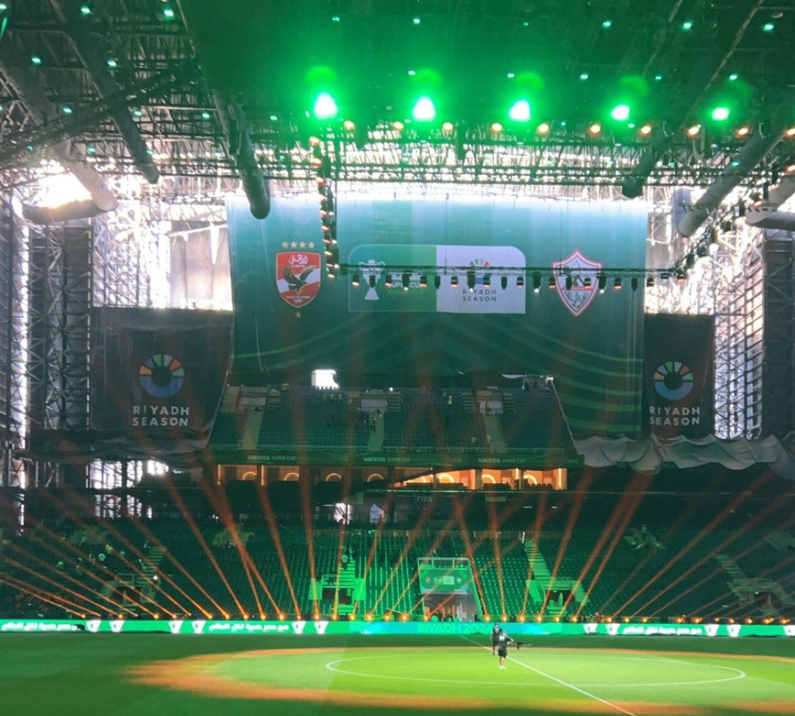 قبل ساعات من انطلاق مباراة كأس السوبر الأفريقي بين الأهلي والزمالك، تداول رواد مواقع التواصل الاجتماعي صورًا لملعب المملكة آرينا الذي من المقرر أن يستقبل اللقاء المرتقب.