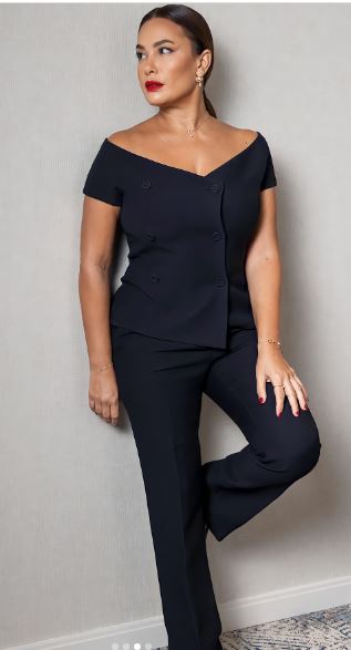 وبدت هند صبري بإطلالة أنيقة، سيطر عليها اللون الأسود، حيث ارتدت بدلة سوداء انيقة التصميم عكست قوامها الرشيق، وتزينت ببعض المجوهرات الذهبية.