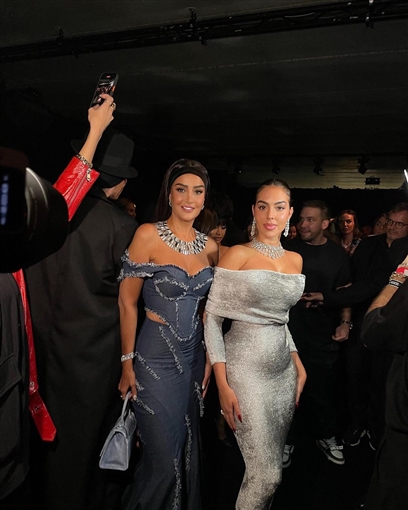 واعتمدت مكياج بالوانات النود الهادئة والجذابة، وارتجت باركة شعر سوداء طويلة، وخلال تواجدها التقت بعدد من سفراء الدار وحضور العرض مثل جورجينا رودريجز وكاردي بي ولوسيان لافيسكونت بطل مسلسل Emily in Paris..