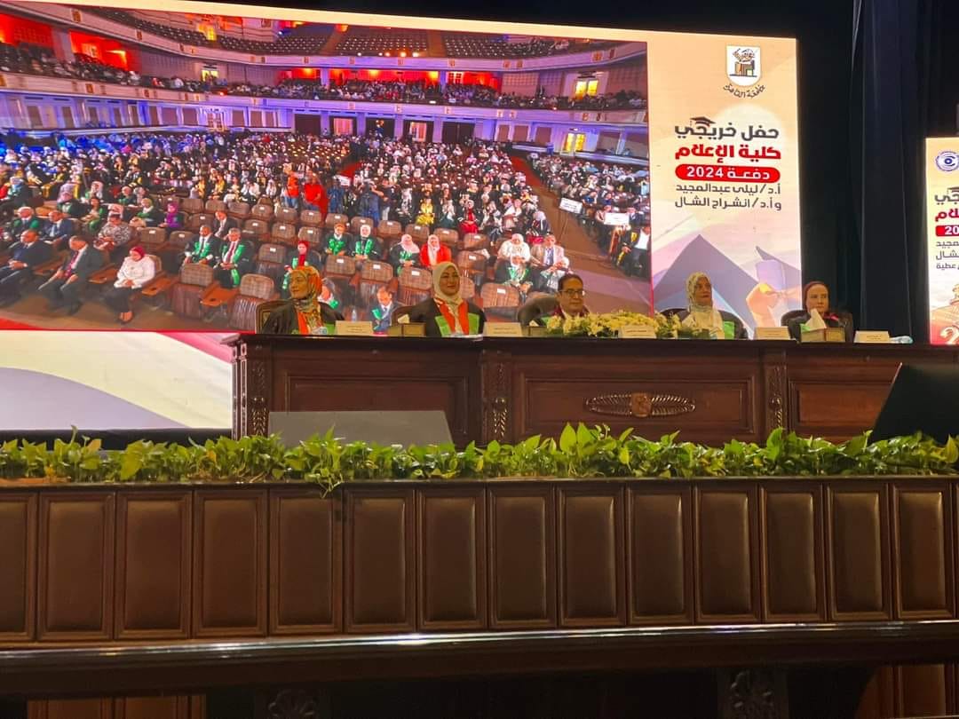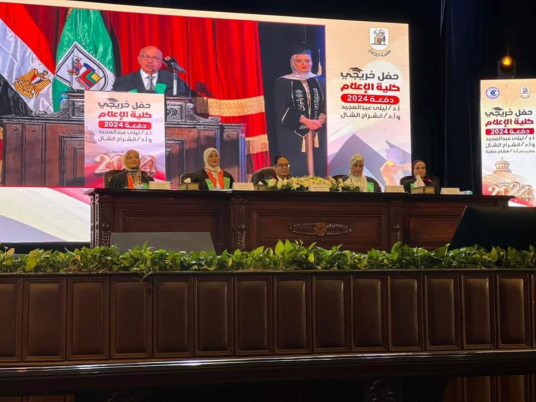 جاء ذلك خلال حفل تخرج طلاب كلية الإعلام جامعة القاهرة الدفعة الخمسين، في قاعة الاحتفالات الكبرى برعاية وحضور الدكتور محمد سامى عبدالصادق، رئيس جامعة القاهرة، والدكتورة ثريا البدوي عميدة كلية الإعلام.