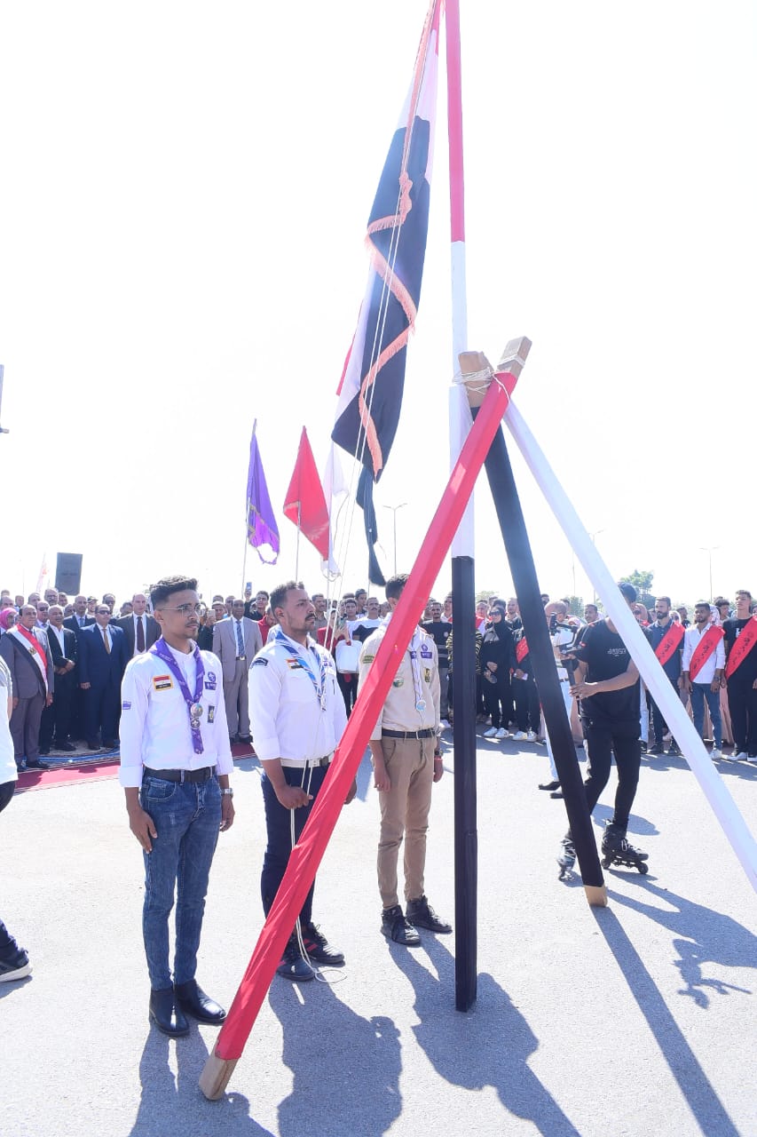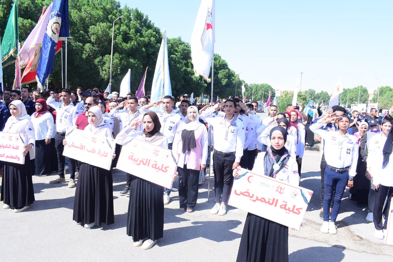 وبدأت المراسم برفع العلم المصري وأداء تحية العلم على أنغام السلام الوطني، فى أجواء مليئة بالحماس والوطنية، بمشاركة جميع القيادات الجامعية وأعضاء هيئة التدريس، وجمع غفير من طلاب الجامعة، وذلك بمقر الجامعة الجديد.