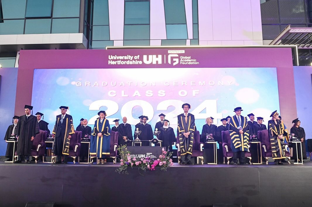 احتفلت جامعة هارتفوردشاير البريطانية المستضافة من مؤسسة جلوبال الجامعية، بتخريج ثاني دفعاتها، حيث أقيم الحفل في الحرم الجامعي، بحضور الدكتور عبدالوهاب عزت، أمين مجلس الجامعات الخاصة، نيابة عن رئيس الوزراء ووزير التعليم العالي، والدكتور مصطفى رفعت، أمين عام المجلس الأعلى للجامعات، والسفير البريطاني السيد جارث بايلي، ورئيس جامعة هارتفوردشاير، البروفسور كوينتن ميكلر، ونائب رئيس جامعة هارتفوردشاير بالمملكة المتحدة، بروفسور مايري واطسون، وعدد من العمداء، بالإضافة إلى نخبة من الشخصيات العامة من الوسطين الأكاديمي والحكومي.