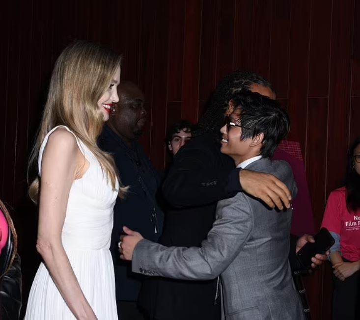 وغمرت السعادة أنجلينا وهي تشاهد أكالا، 40 عامًا، وباكس يحتضنان بعضهما البعض، وكانت أثارت جديدة حامت حول أنجلينا ومطرب الراب البريطاني أكالا بعد أن شوهد الثنائي خارجين من فندقها في إيطاليا خلال مهرجان البندقية السينمائي .