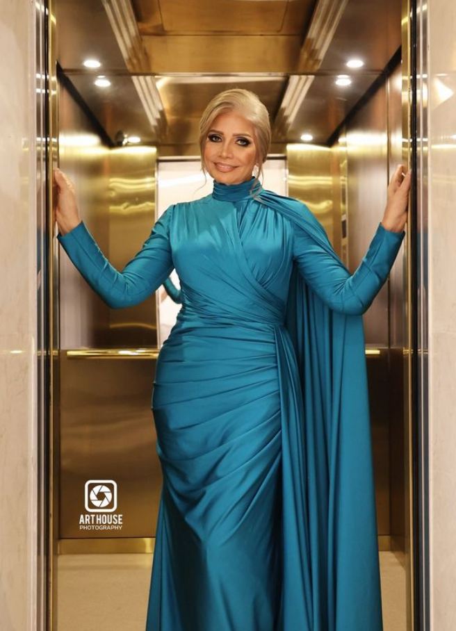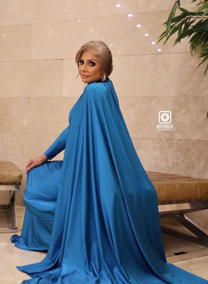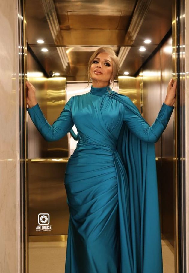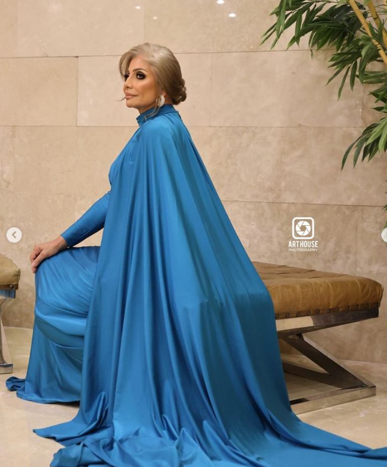 وبدت سوسن بدر أميرة مفعمة بالأناقة والرقي في آن واحد، مواكبة لأحدث صيحات موضة فساتين خريف 2024، حيث ارتدت فستان طويل مجسم، بأكمام طويلة، ينتمي لصيحة الكشكش من الأمام مع كاب ناعم، صمم الفستان من قماش الكريب باللون الجنزاري الهادئ، لتستعرض قوامها الرشيق ووزنها المثالي.