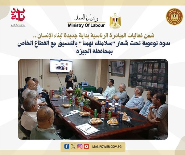 وزارة العمل تنظم ندوة "سلامتك تهمنا" بالتنسيق مع القطاع الخاص بالجيزة