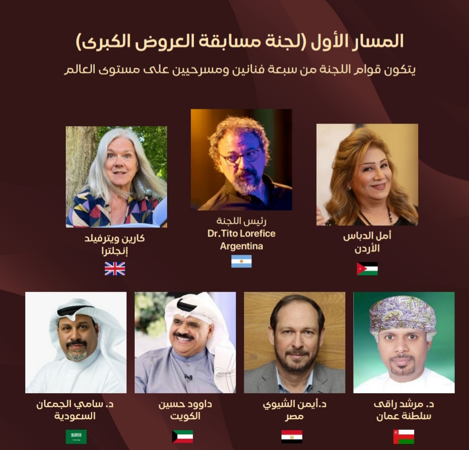 يتكون المسار الأول من مسابقة العروض الكبرى بلجنة تحكيم دولية برئاسة رئيس لجنة التدريب المهني التابعة لليونسكو وأستاذ المسرح الدكتور تيتو لوريفيس من  الأرجنتين و بعضوية كل من الفنانة والنجمة القديرة أمل الدباس من الأردن و الدكتور أيمن الشيوي من مصر  والكاتبة والمؤلفة المسرحية كارين ويترفيلد من  انجلترا و الدكتور مرشد راقي من سلطنة عُمان والدكتور سامي الجمعان من  المملكة العربية السعودية والفنان والنجم القدير داوود حسين من دولة الكويت  ويتنافس في المسابقة 6 عروض مسرحية  هي من سلطنة عمان "مساء للموت و موشكا " ومن تونس مسرحية "مايراوش" ومن العراق مسرحية "خلاف" وسوريا مسرحية "سقيفة" ومن إيطاليا مسرحية "Romeo & Juliet The Final Hours"