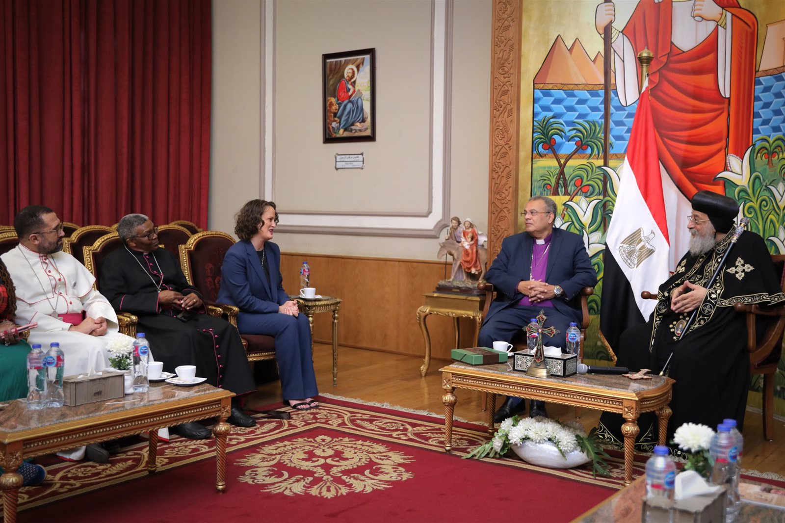 كما حضر اللقاء الأستاذة سميرة لوقا، رئيس قطاع أول للحوار بالهيئة القبطية الإنجيلية للخدمات الاجتماعية وعضو المجلس القومي لحقوق الإنسان، والأنبا يوليوس، الأسقف العام لكنائس مصر القديمة وأسقفية الخدمات العامة والاجتماعية، والراهب القس كيرلس الأنبا بيشوي، مدير مكتب قداسة البابا، والسيدة بربارة سليمان، مديرة المكتب البابوي للمشروعات والعلاقات.