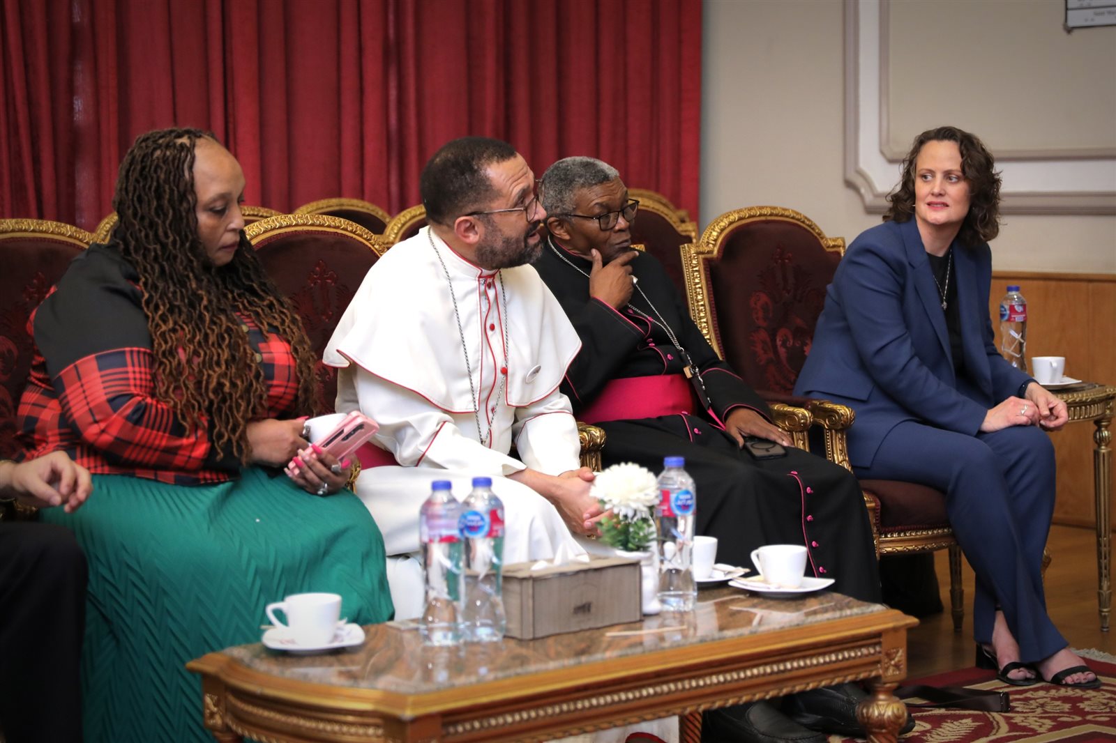 جاء وفد مجلس كنائس جنوب إفريقيا وممثلي الكنائس الأمريكية برئاسة الدكتورة القس ماي إليس كانون، المديرة التنفيذية لمنظمة "كنائس من أجل السلام في الشرق الأوسط".