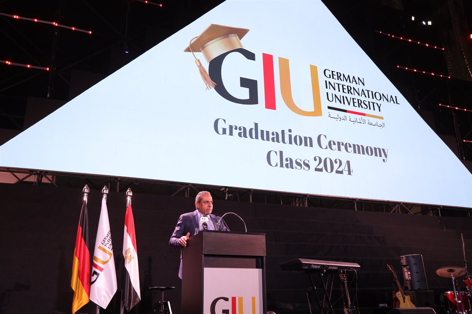 وأكد الدكتور أشرف منصور الرئيس المشارك لمجلس أمناء الجامعة الألمانية الدولية بالعاصمة الإدارية الجديدة GIUورئيس مجلس أمناء الجامعة الألمانية بالقاهرة، أن أولياء الأمور هم شركاء النجاح، وجهودهم هى التى أثمرت عن تخرج الطلاب اليوم، وأن خريجي الجامعة الألمانية الدولية هم هدية للعالم ولمصر، حيث نحتفل بتخريج ٥٩٧ طالبا وطالبة، فهم يعدون سفراء للسلام والعلم في كل مكان، وأن التعليم والعلوم هما البوابة الرئيسية لثقافة السلام العالمية.