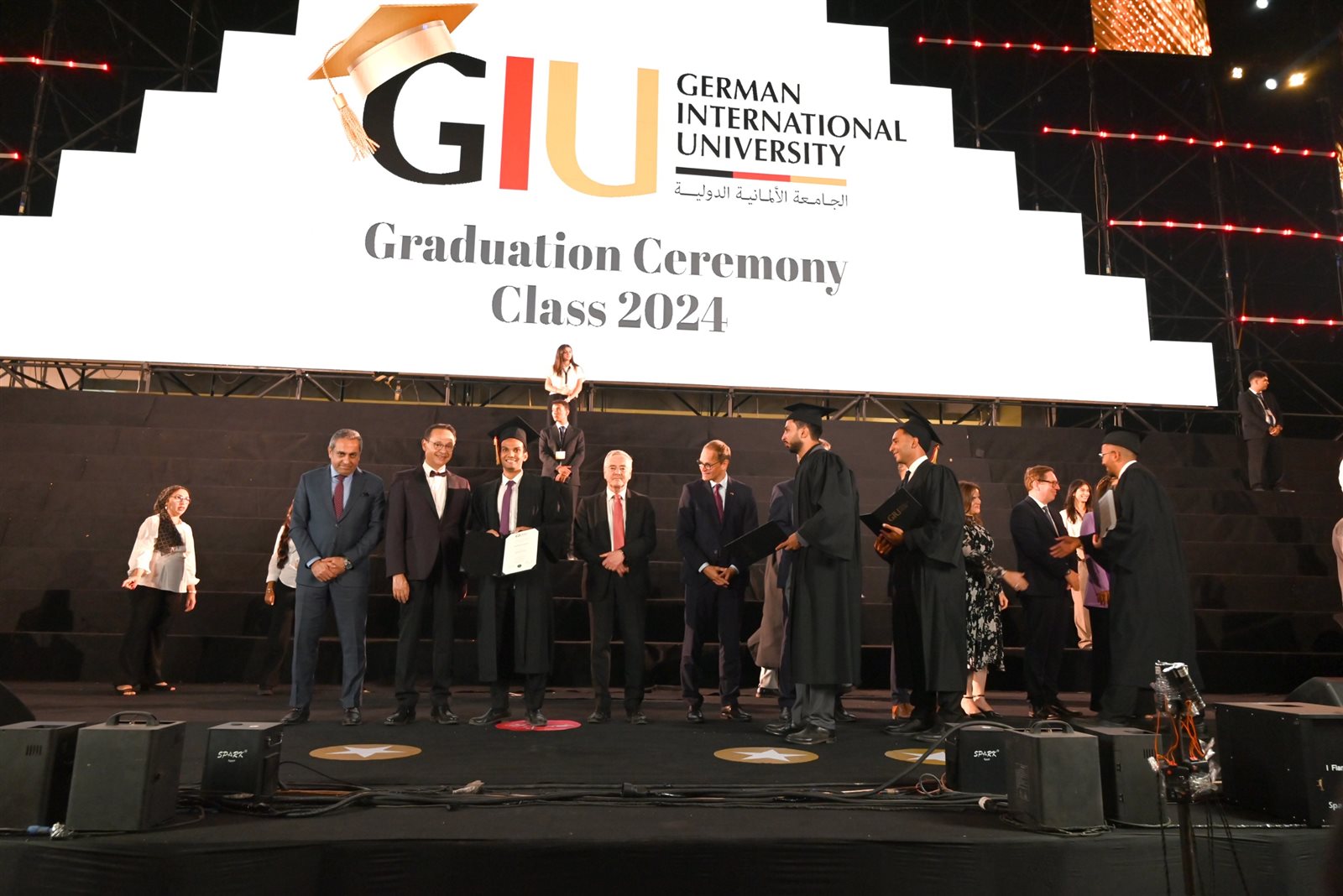 أقيمت الجامعة الألمانية الدولية بالعاصمة الإدارية الجديدة بتخريج دفعة جديدة بحضور الدكتور أشرف منصور الرئيس المشارك لمجلس أمناء الجامعة الألمانية الدولية، ويوليوس جورج لوي رئيس مجلس أمناء الجامعة الألمانية الدولية، والدكتور سليم عبدالناظر رئيس الجامعة والدكتور ياسر حجازى رئيس الجامعة الألمانية بالقاهرة وعدد من الشخصيات رفيعة المستوى من الجانبين المصري والألماني.
