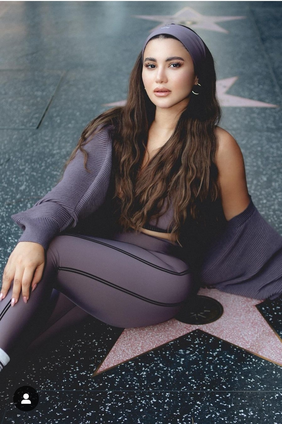 وبدت هدى الإتربي بإطلالة رياضية، حيث ارتدت ترينج صمم من اللاميه باللون البنفسج، عكس رشاقة قوامها ووزنها المثالي فيما انتعلت حذاء رياضي باللون الأبيض.