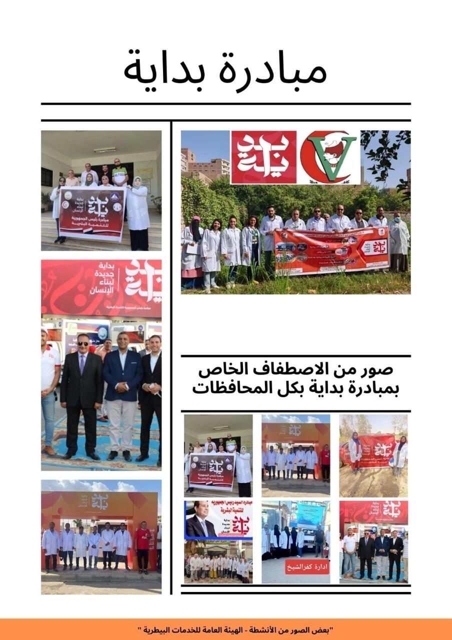 في إطار المبادرة الرئاسية "بداية" برعاية الرئيس عبدالفتاح السيسي ، وبناءً على توجيهات علاء فاروق، وزیر الزراعة واستصلاح الأراضي وتعليمات المهندس مصطفى الصياد نائب الوزير ، تكثف الهيئة العامة للخدمات البيطرية جهودها وتستمر في تنظيم القوافل البيطرية المجانية الشاملة في جميع محافظات مصر.