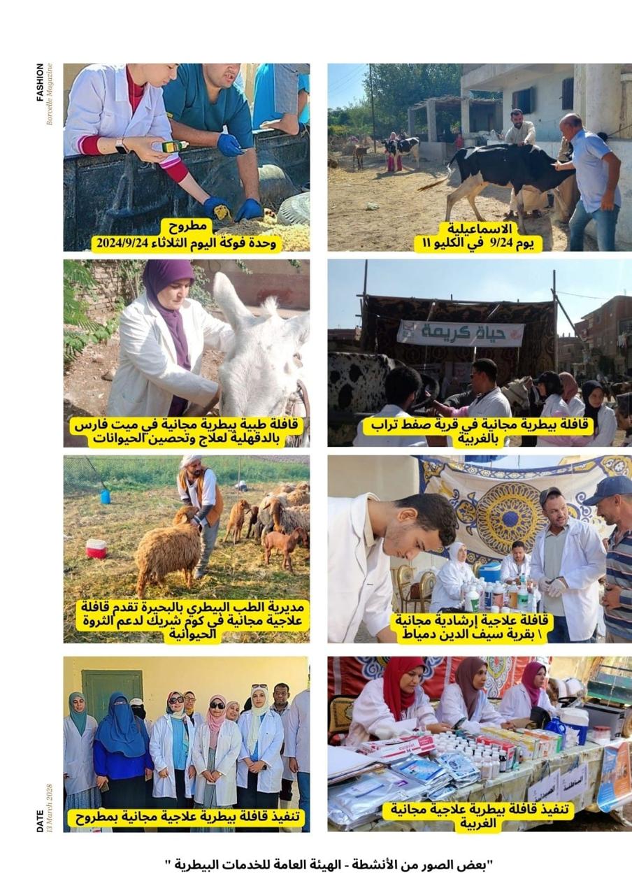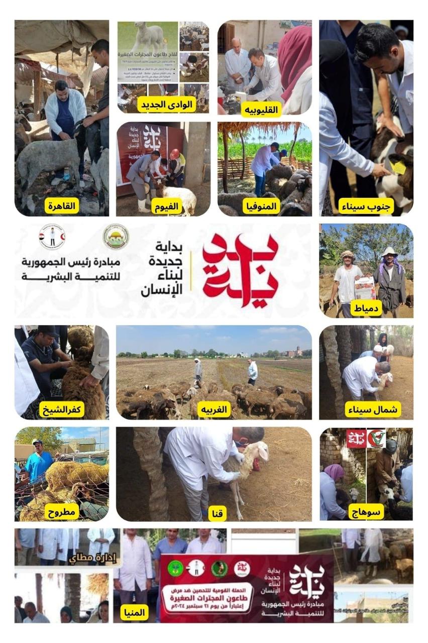 وتم إطلاق حملات وقوافل بيطرية مجانية شاملة في كافة محافظات الجمهورية، وداخل كل محافظة يتم تنفيذ أكثر من قافلة بيطرية في القرى والنجوع الأكثر احتياجاً تقدم القوافل جميع الخدمات الفنية التي تحتاجها الثروة الحيوانية، بما في ذلك الفحص البيطري والكشف الشامل على الحيوانات وتقديم العلاج والقيام بالعمليات الجراحية، ومكافحة الطفيليات الداخلية والخارجية من خلال الرش والتجريع بالإضافة إلى الكشف عن الأمراض الباطنية وسوء التغذية، وإجراء الفحوصات باستخدام السونار والمسح التناسلي، إلى جانب التوعية الإرشادية والرعاية الثقافية للمرأة الريفية. بالإضافة إلى هذه الجهود، يتم حاليا تنفيذ الحملة القومية للتحصين ضد طاعون المجترات الصغيرة، بهدف حماية الثروة الحيوانية من هذا المرض الفتاك الذي يصيب الأغنام والماعز. تشمل الحملة تحصين الحيوانات في مختلف محافظات الجمهورية لحماية الثروة الحيوانية وتأتي هذه الجهود ضمن حرص الدولة على دعم الفلاحين والمرأة الريفية، وضمان استدامة مواردهم.