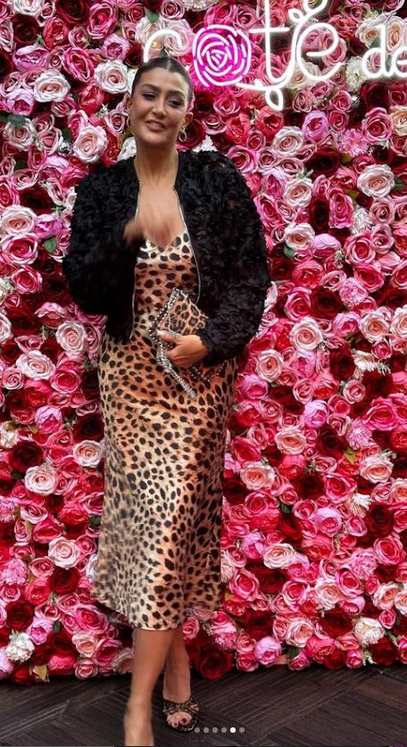 وبدت غادة عبدالرازق بإطلالة ساحرة مفعمة بالأنوثة والجاذبية في آن واحد، حيث ارتدت فستان طويل مجسم، ينتمي لقصة الـv، صمم من قماش الساتان بنقشة التايجر لمواكبة أحدث صيحات موضة فساتين خريف 2024.