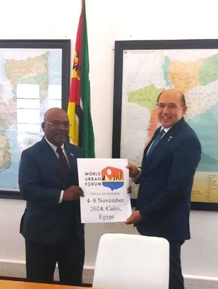 كما سلم السفير المصري دعوة إلى الوزير الموزمبيقى لحضور فعاليات النسخة الثانية عشر للمنتدى الحضري العالمي، والذي سيعقد فى نوفمبر 2024 بالقاهرة.