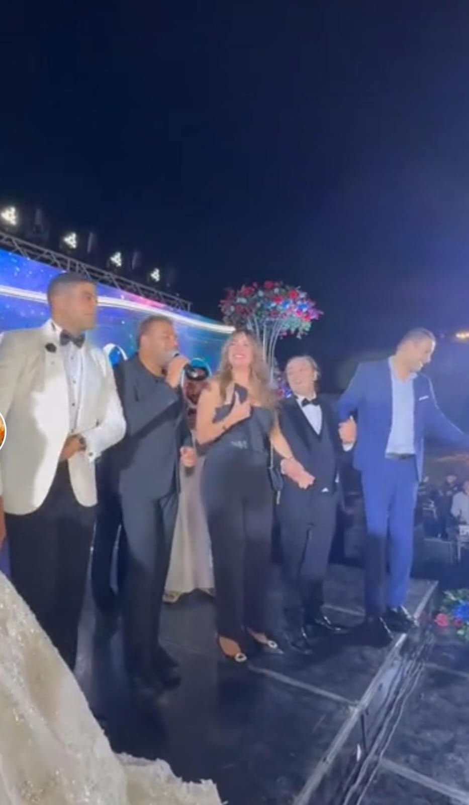 واشعل الفنان رامي صبري حفل الزفاف بفقرة غنائية مميزة، وسط تفاعل كبير من الحاضرين وشاركه المسرح والد العروس والنجمة نرمين الفقي التي كانت تتراقص بخفة على أنغامه.