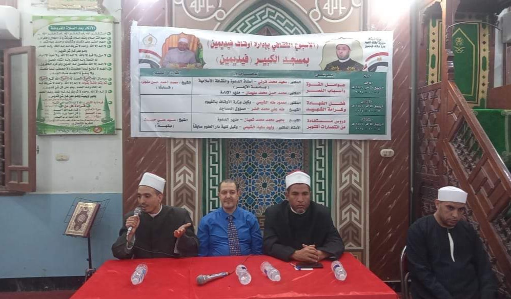 جاء ذلك تنفيذا لتوجيهات الدكتور أسامه السيد الأزهري وزير الأوقاف وتحت إشراف الدكتور محمود الشيمي وكيل وزارة الأوقاف بالفيوم، وبحضور الدكتور سعيد محمد قرني أستاذ الدعوة والثقافة بكلية الدعوة الإسلامية بالقاهرة محاضرا، وفضيلة الشيخ محمد حسن محمد مدير الإدارة محاضرا، وفضيلة الشيخ طه علي مسئول المساجد بالمديرية، وفضيلة الشيخ أحمد رجب إمام المسجد مقدما.