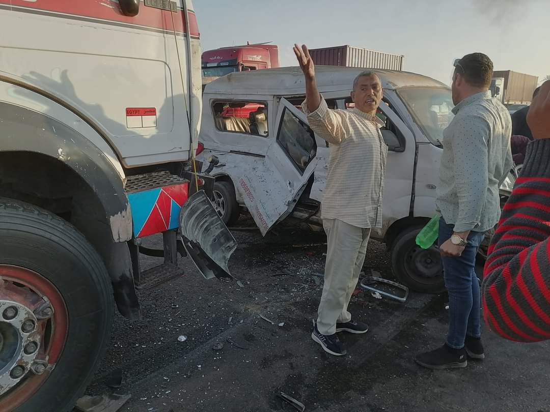 تلقت غرفة عمليات المرور، إخطارًا من شرطة النجدة بوقوع حادث مروري أعلى الطريق الإقليمي قبل نزلة الأخصاص، وعلى الفور انتقلت أجهزة الأمن لمكان الواقعة وتبين اصطدام سيارة نقل بسيارة ميكروباص وأخرى ملاكي.