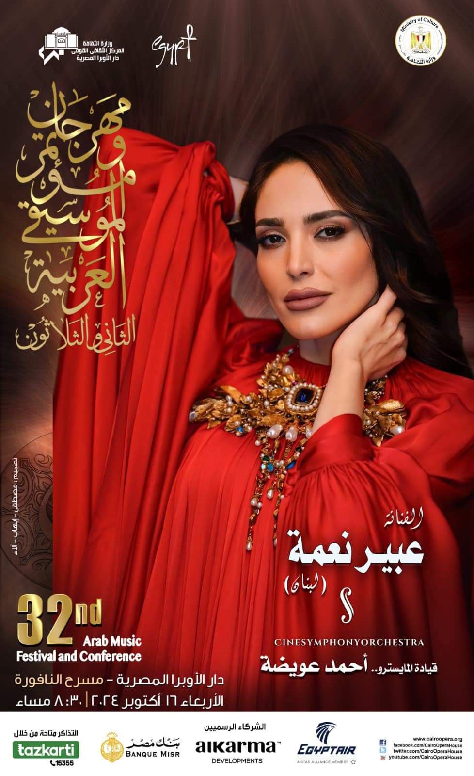 تستعد الفنانة اللبنانية عبير نعمة، للوقوف على مسرح النافورة بدار الأوبرا المصرية، مساء الأربعاء ١٦ أكتوبر بمصاحبة أوركسترا سيني سيمفوني بقيادة المايسترو أحمد عويضه، في إطار مهرجان ومؤتمر الموسيقى العربية في دورته الـ٣٢.
