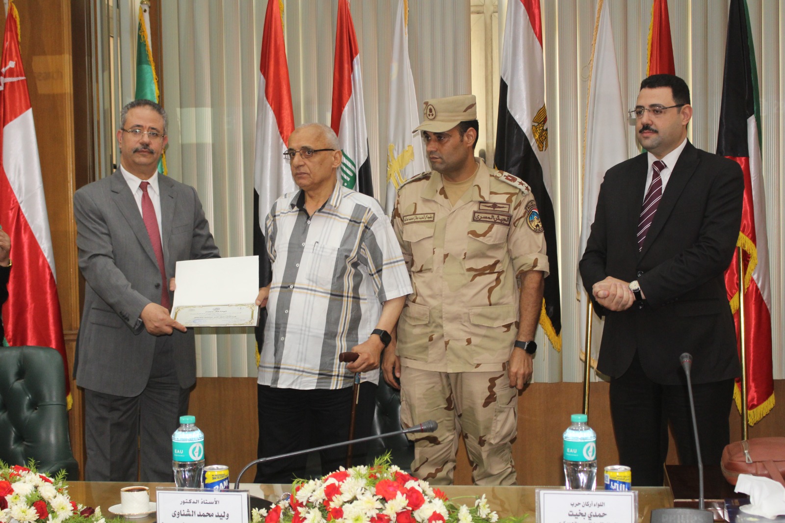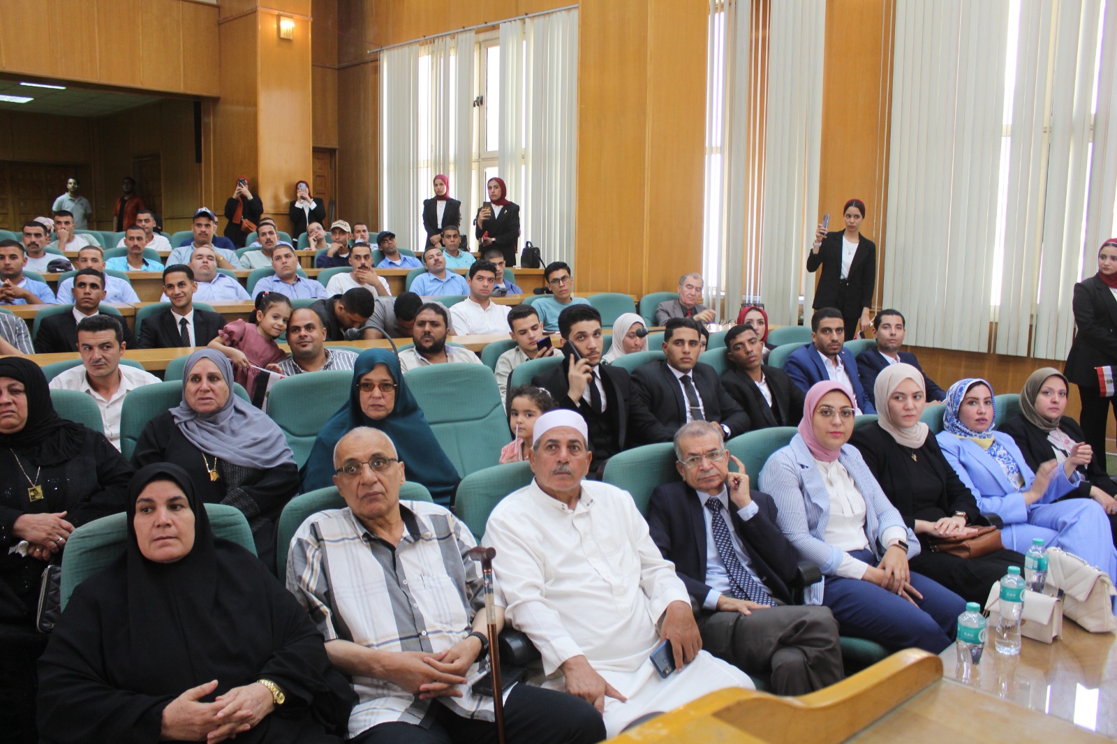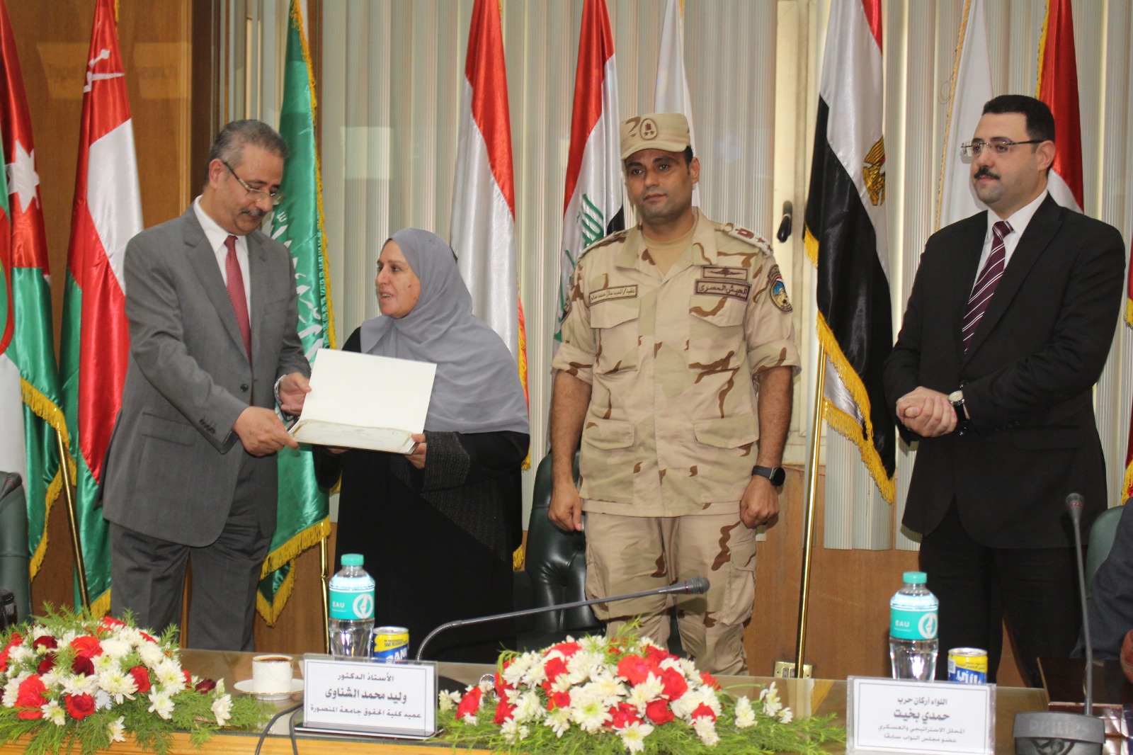 بحضور الدكتور محمد عبد العظيم نائب رئيس الجامعة لشئون خدمة المجتمع وتنمية البيئة، الدكتور وليد الشناوي عميد كلية الحقوق، الأستاذ الدكتور علاء التميمي وكيل الكلية لشئون خدمة المجتمع وتنمية البيئة، حازم نصر نائب رئيس تحرير جريدة الأخبار، العقيد محمد نادر نائب قائد مكتب المخابرات الحربية بالدقهلية، العقيد السيد جلال نائب المستشار العسكري لمحافظة الدقهلية، العقيد محمد عبد البارى مدير إدارة التربية العسكرية.وتم تكريم المحاربين القدماء وأهالى وأسر الشهداء من القوات المسلحة