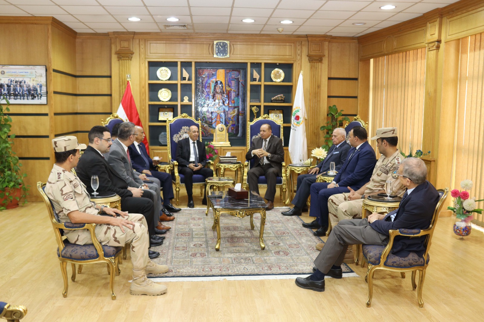 استقبل الدكتور شريف يوسف خاطر رئيس جامعة المنصورة، اللواء أركان حرب حمدي بخيت أحدُ أبطالِ حرب أكتوبر المجيدة، والمستشارُ بالأكاديميةِ العسكريةِ للدراساتِ العليا والإستراتيجية & واللواء أركان حرب نصر سالم من أبطالِ حرب أكتوبر رئيس جهازِ الاستطلاعِ الأسبق & واللواء طيار دكتور حسن محمد حسن من أبطال حرب أكتوبر ومديرُ الكليةِ الجويةِ الأسبق، وذلك على هامش احتفال كلية الحقوق بالذكرى 51 لانتصار أكتوبر 1973 لإحياء روح النصر وبث روح الرفعة والكرامة بداخل ابنائنا الطلاب.