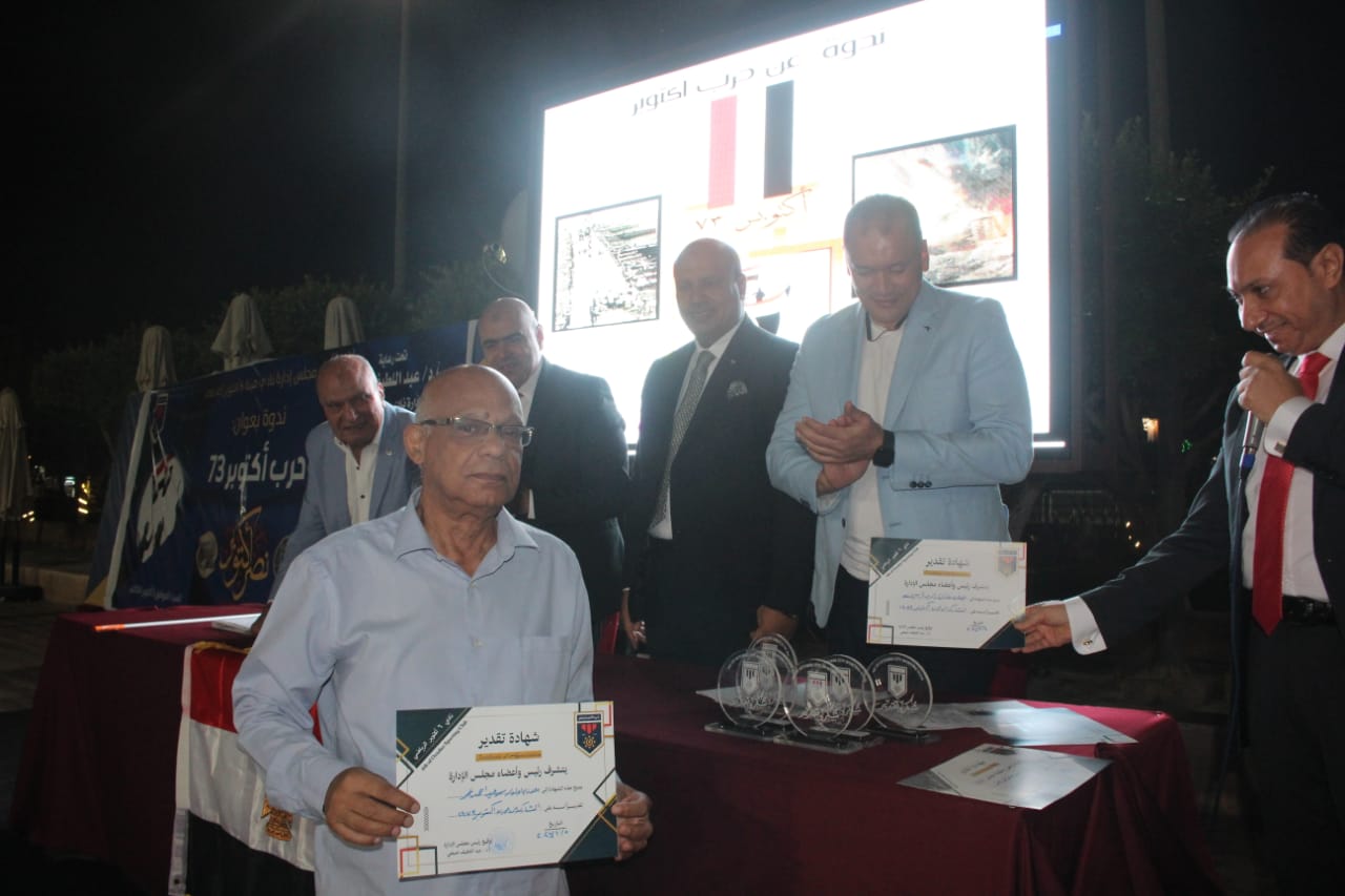 وتم تكريم كلا من، اللواء / محمود عباس على موسى سلاح المدفعية الميدان بالفرقة 4 مدرعة و الدكتور / سعيد احمد عمر خدم بالدفاع الجوى و المهندس / صقر محمد صقر برتبة ملازم احتياط في سلاح مشاه ميكانيكي / فرقة 18 و المهندس / فريد يسين شارك في حرب اكتوبر و الحاج / احمد حامد جودة برتبة ملازم اول فى سلاح المشاه اللواء 119 مشاه و أ/ حمدى محمد جمعة شارك في الحرب بالشرطة العسكرية و مجند / محمود اسماعيل الجيش الثانى الميداني الفرقة الرابعة مدرعة الكتيبة 20 اصيب 12 شظية وفقد السمع والبصر لمدة 18 يوم والجندي / فتحى متولى و محمود ابو المجد شهيد شرطة و اللواء محمد هريدي جابر سلاح الدفاع الجوي.