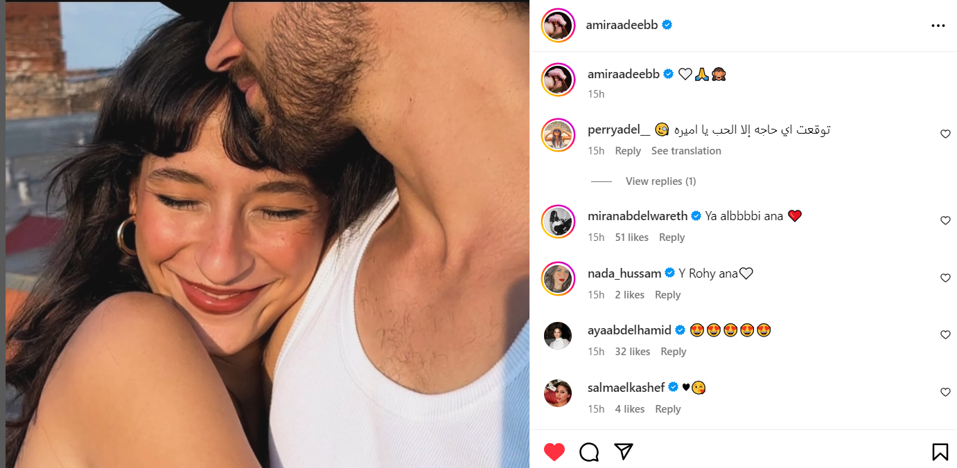 سرعان ما انهالت المباركات على أميرة أديب من قبل جمهورها، معبرين عن فرحتهم الشديدة بوقوعها في الحب، لترد عليهم قائلة: "متقولوش لحد ده سر بيننا"، ثم نشرت بعدها صورة جديدة تجمعها بحبيبها تأكيدًا للأنباء المتداولة حول خطبتها.