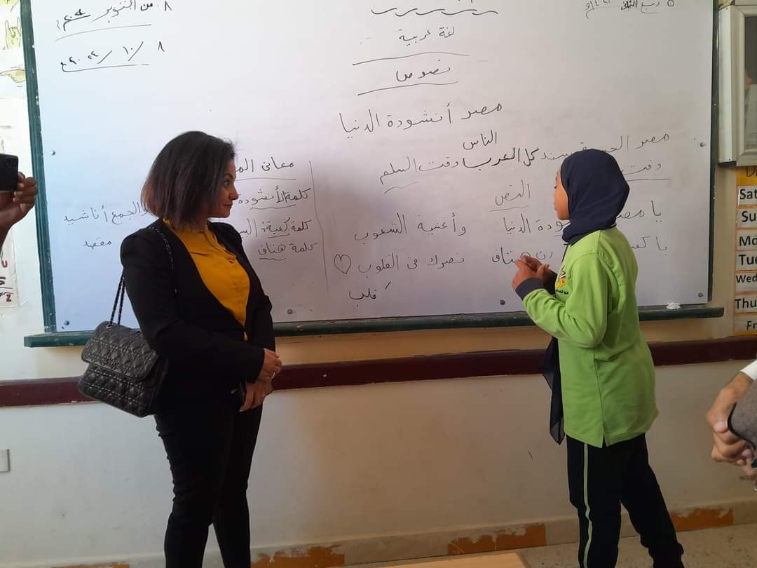 رافقها خلال الجولة الدكتور هشام منير، مدير مديرية التربية والتعليم، ورايدة ، مدير وحدة حقوق الإنسان بالمحافظة ، و فايزة احمد مدير عام التعليم العام ، و رضوي فوزي مدير إدارة التربية الخاصة بالمديرية.