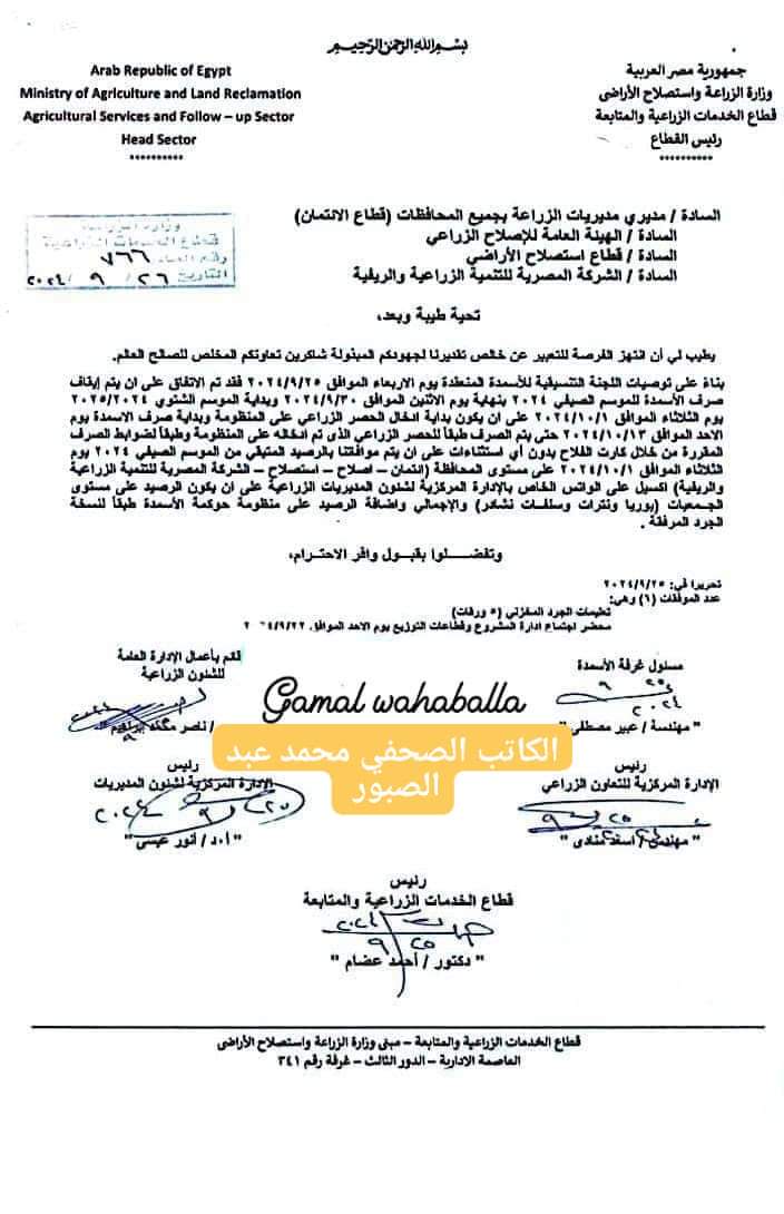 وأكد من  انتهاء موسم التوريد وتوقف صرف الأسمدة الكيماوية، يأتى وسط حالة من التخبط تشهدها مديرية الزراعة والتعاون الزراعى بقنا، لمتابعة الموقف وتحديد مصير الأسمدة الكيماوية التى جرى حجزها على مدار الاشهر الماضية بشكل رسمى للمزارعين، وعدم وجود خطة واضحه لدى المديرية فى  التعامل مع الموقف، خاصة فى ظل موجه من الغضب تنتاب الغالبية من المزارعين، مما يرون عدم تمكنهم من الحصول على مقرراتهم السمادية، بالرغم من تورديهم لثمنها منذ أشهر مضت، محملين الحكومة مسؤولية التأخير وإهدار مقرراتهم السمادية .