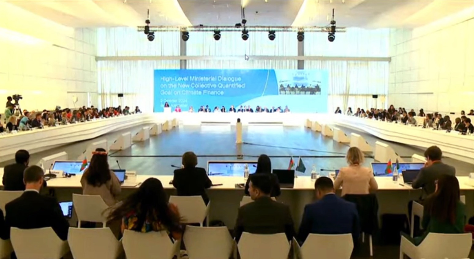 شاركت الدكتورة ياسمين فؤاد وزيرة البيئة بصفتها مسئول عن تسهيل مفاوضات تمويل المناخ على المستوى الوزارى في الجلسة الوزارية رفيعة المستوى حول الهدف الجمعي الكمي الجديد لتمويل المناخ، وذلك برئاسة الدكتور مختار باباييف رئيس مؤتمر المناخ COP29 ووزير النظام البيئي والموارد الطبيعية بأذربيجان، وحضور امينة محمد نائب الأمين العام للأمم المتحدة، و سيمون ستيل الأمين التنفيذي لاتفاقية الأمم المتحدة للمناخ، وعبر الفيديو كريس بوين وزير المناخ والطاقة بأستراليا، وعددا من وزراء البيئة والمناخ من مختلف دول الدول ، حيث تتولى وزيرة البيئة المصرية ونظيرها الاسترالي قيادة مشاورات الهدف الجمعي الكمي الجديد لتمويل المناخ.