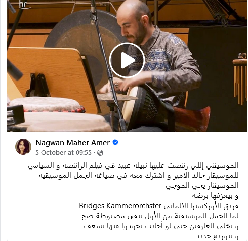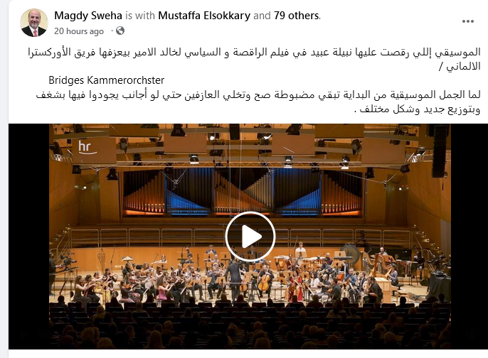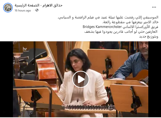 عزفت الأوركسترا Bridges Kammerorchster إحدى معزوفات فيلم الراقصة والسياسي والتي اشتهرت بها الفنانة الكبيرة نبيلة عبيد ورقصها الناعم على أنغامها، وكانت من تأليف الموسيقار خالد الأمير.