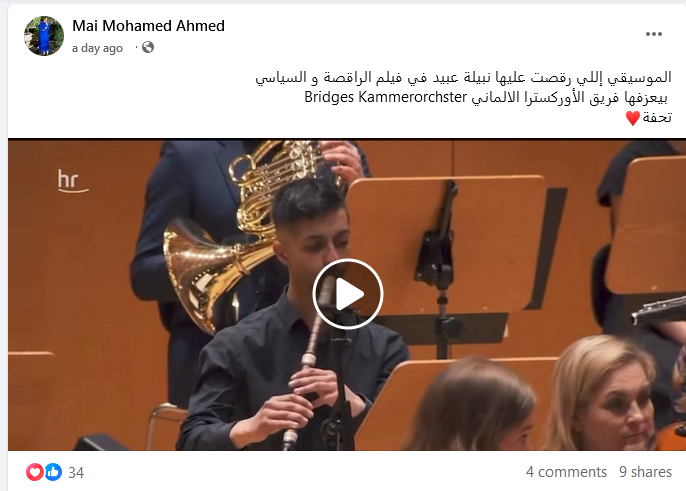 اجتمع فريق الأوركسترا الألماني Bridges Kammerorchster، لإعادة عزف الموسيقى الشهيرة لفيلم “الراقصة والسياسي” والتي حققت نسبة مشاهدة عالية عبر يوتيوب، وجاءت بردود فعل إيجابية واعتلت منصات الحديث عبر مواقع التواصل الاجتماعي.