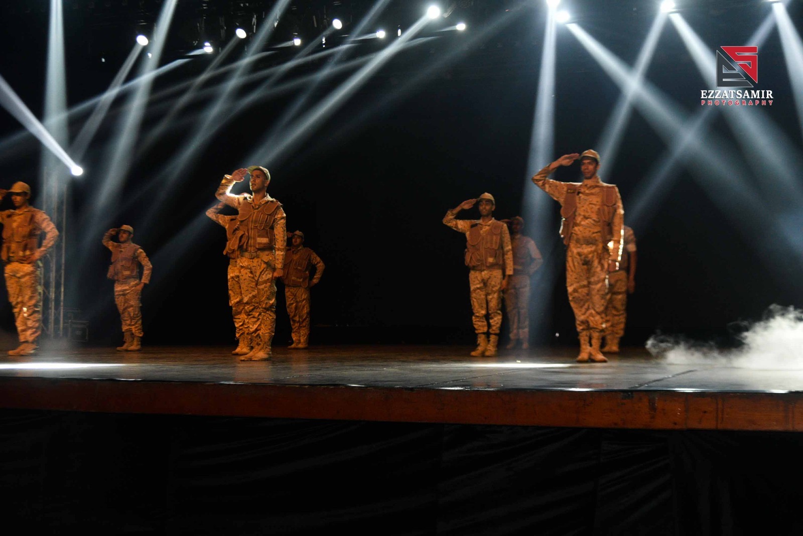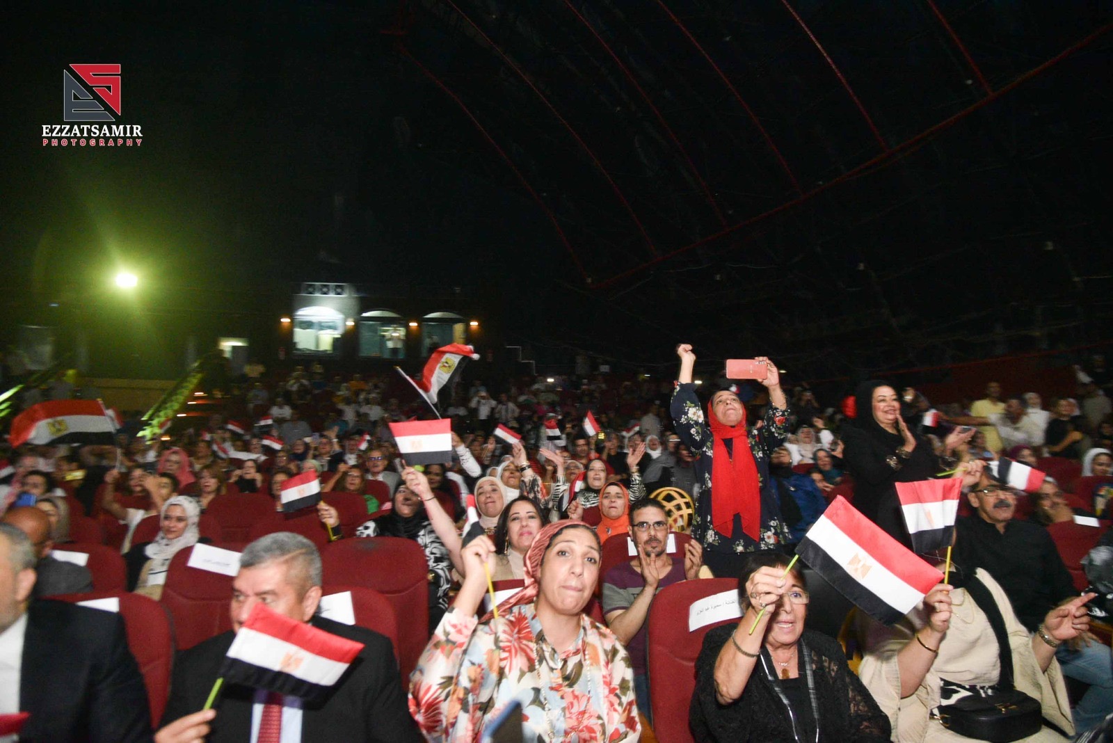 بدأ الحفل بالسلام الوطني لجمهورية مصر العربية ثم صعد الفنان تامر عبدالمنعم رئيس البيت الفني للفنون الشعبية والاستعراضية وألقى كلمته شكر من خلالها وزارة الثقافة المصرية لإقامتها احتفالات بمناسبة عيد النصر ووجه الشكر للدكتور أحمد فؤاد هنو الذي أقيمت هذه الاحتفالية تحت رعايته كما توجه بالشكر إلى المخرج خالد جلال رئيس قطاع المسرح.