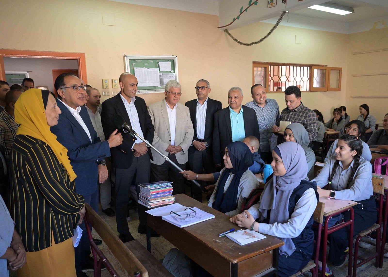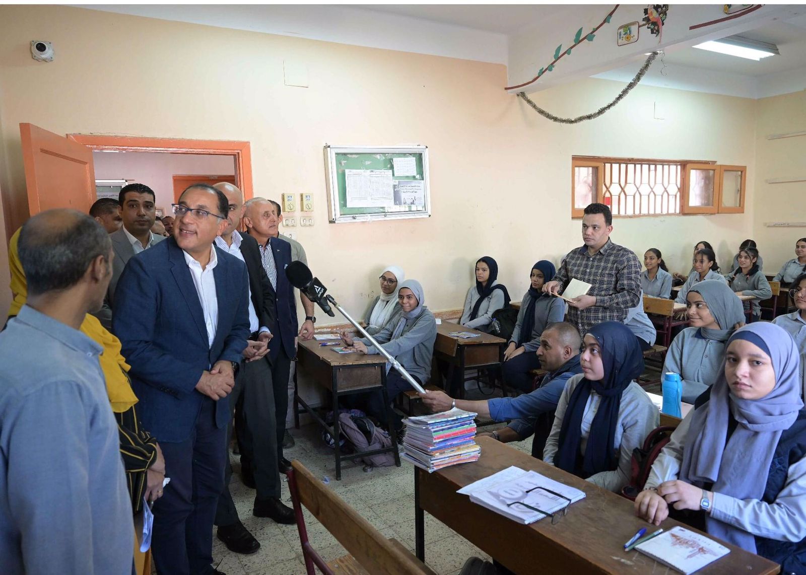 وانتقل رئيس الوزراء، لفصل من فصول الصف الثاني الثانوية، حيث أشار الطالبات إلى أن كثافة الطالبات داخل الفصل انخفضت بنسبة تقترب من الـ 50% مقارنة بالعام الماضى، حيث كانت تصل كثافة الفصل إلى 70 طالبة.