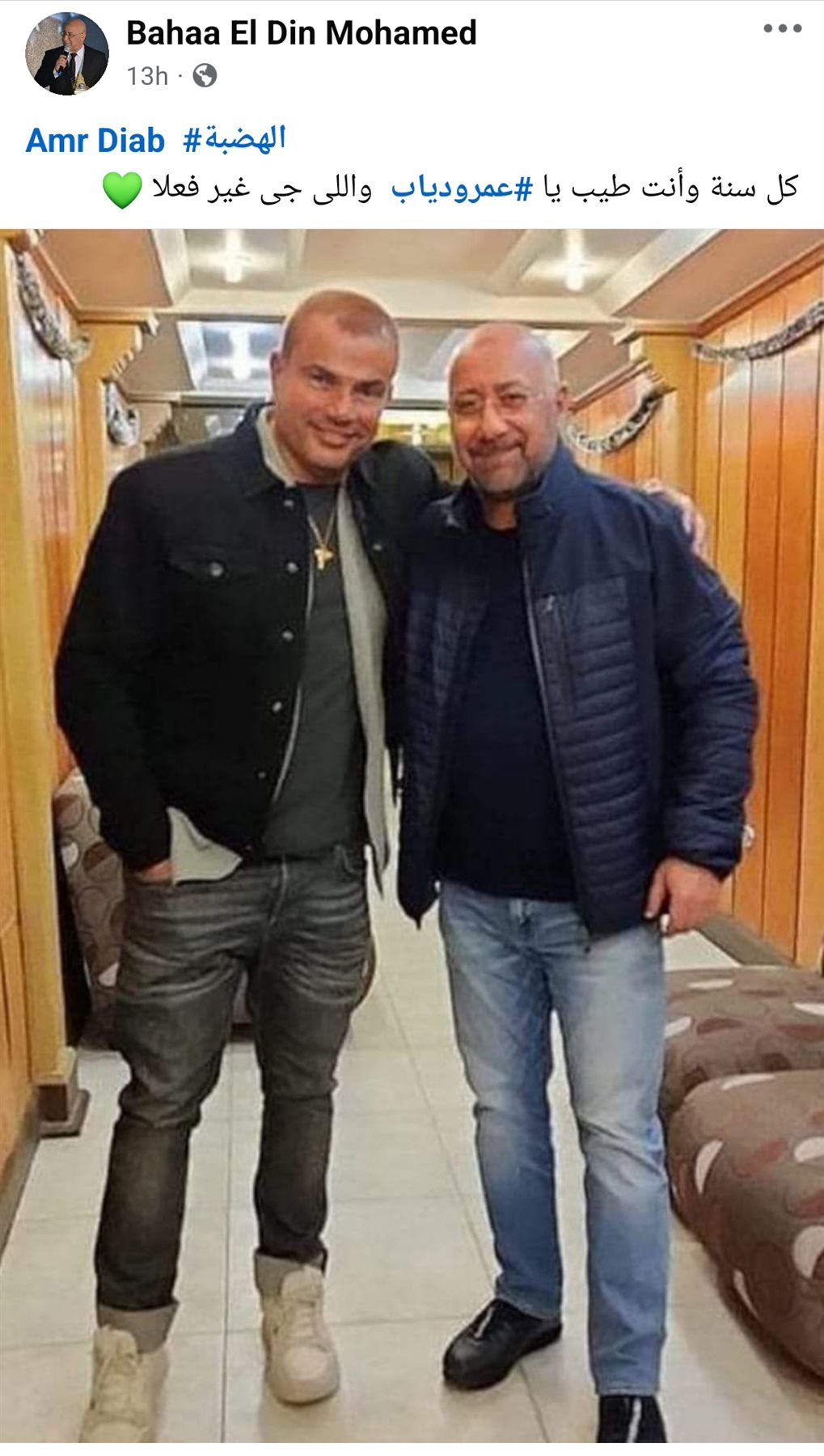 ونشر بهاء الدين، صورة تجمعه بالفنان الكبير عمرو دياب، وعلق عليها قائلًا : "كل سنة وانت طيب يا عمرو دياب، واللي جاي غير فعلا".