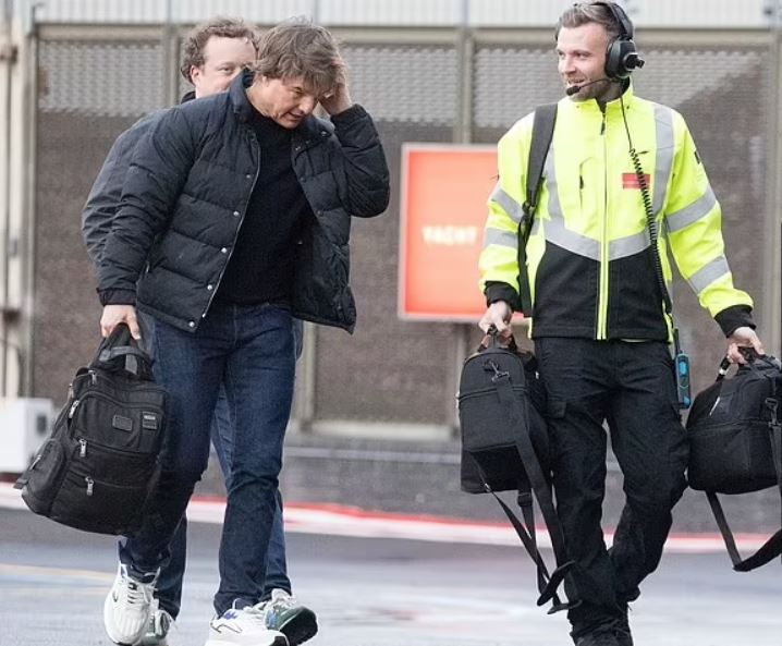 ووصل توم كروز إلى لندن وعلامات القلق تبدو جلية عليه، بعد أن طار بطائرته الهليكوبتر، إلى مطار باترسي في لندن برفقة شقيقته ماريان والممثلين سيمون كوبو ومارتينا فيراغامو، على بعد آلاف الأميال من منزله.