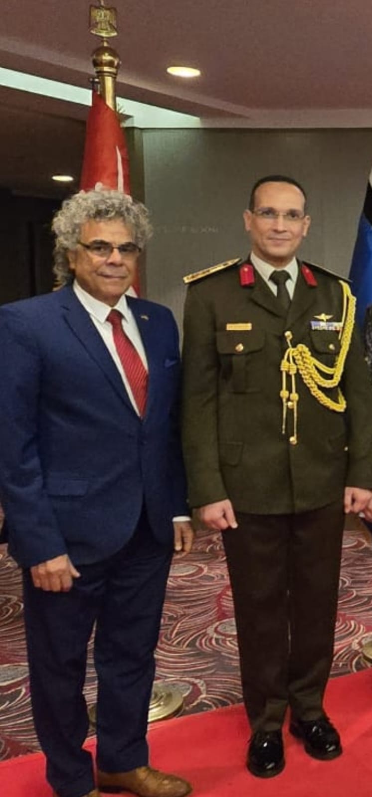 دعا العميد أركان حرب محمد أسامة الملحق العسكري لجمهورية مصر العربية في ألمانيا، علاء ثابت، رئيس بيت العائلة المصرية في المانيا وحرمه وعددًا من أبناء الجالية والمسؤولين، للاحتفال بذكرى نصر أكتوبر المجيد، والذي نظمته الملحقية العسكرية في برلين.