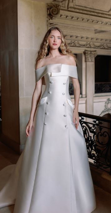 ورجحت مجموعات خريف 2025 كفة العصرية، والتي ازاحت بشكل جزئي فستان الزفاف التقليدي، فوجدنا الموديلات المصممة على طراز المعطف المزود بأزرار على الجهتين Double Breasted لدى ماركة سارة نوري Sareh Nouri، والذي أتى بقصة A Line وأكمام منسدلة عن الكتفين، تصميم رائع جمع بين الطابع الأنثوي والأسلوب العصري، ستحبه العروس الجريئة، وننصحها بتنسيقه مع حذاء ساتان أبيض، وقلادة وأقراط ناعمة من الذهب الأبيض.