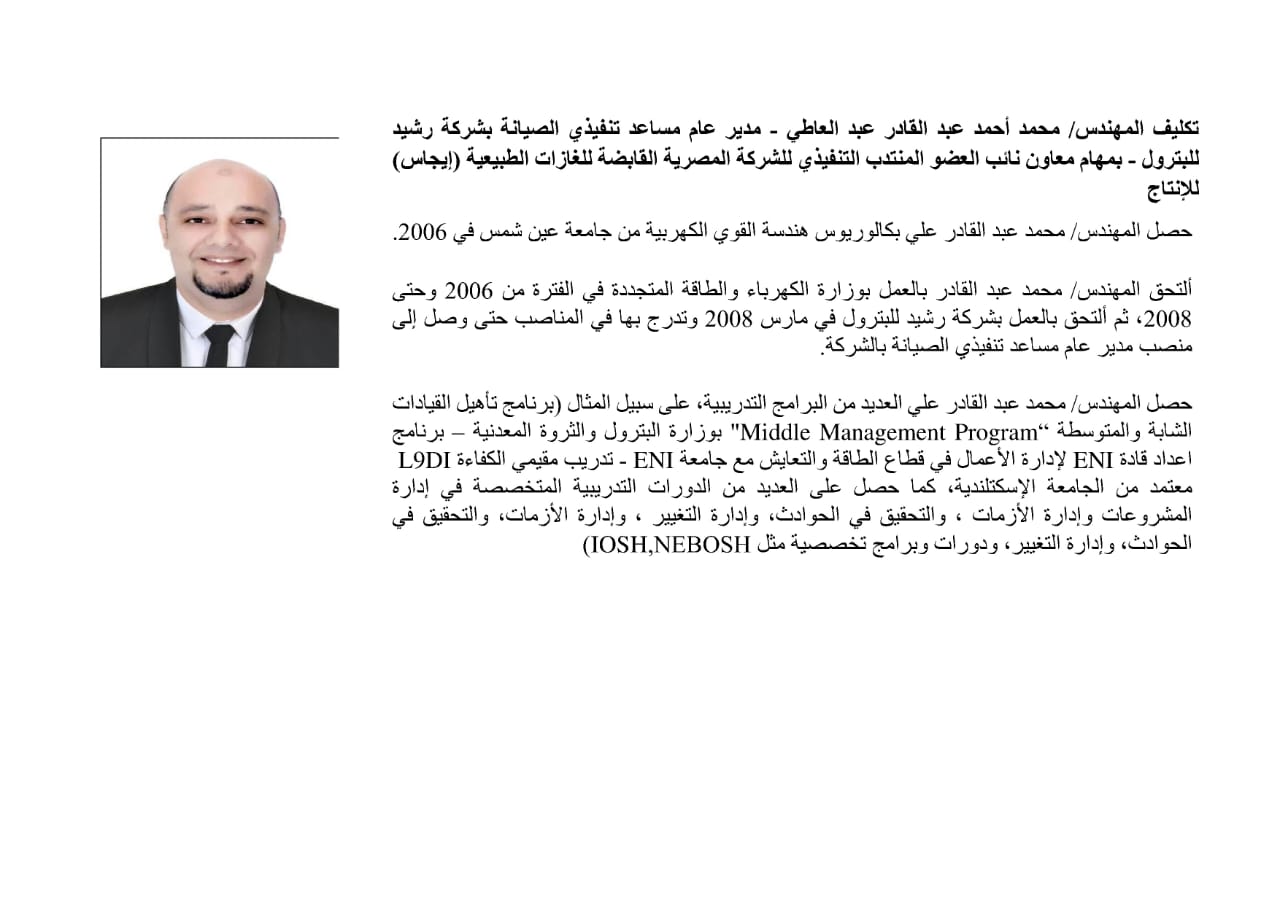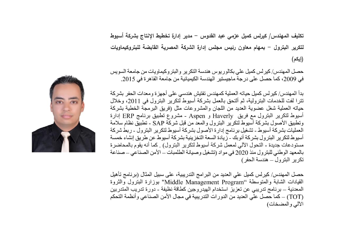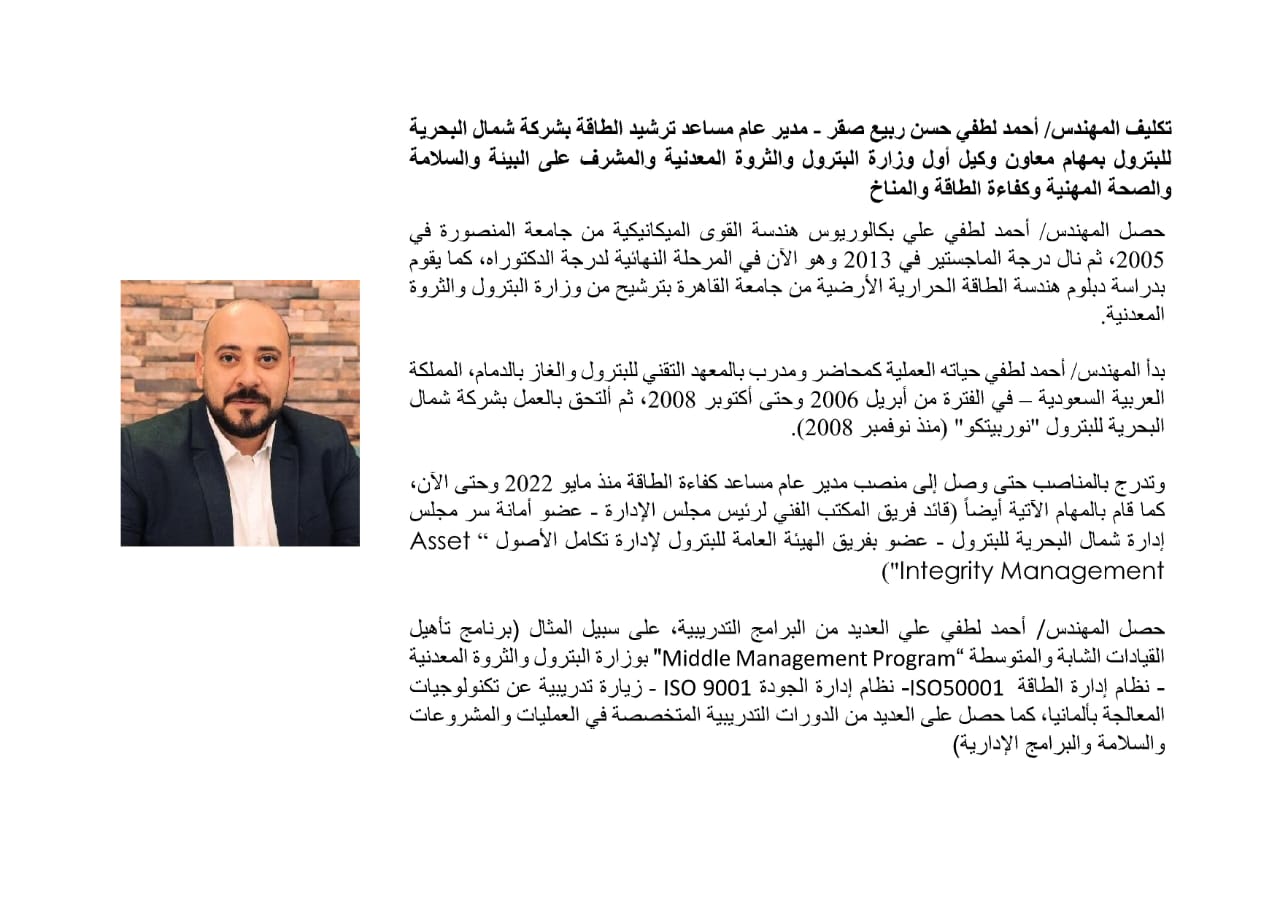 جاء ذلك استمرارا لسياسة الوزارة في الاستفادة من كوادرها البشرية من خريجي برنامج لقيادات الشابة والمتوسطة لإيجاد قاعدة قوية من القيادات قادرة على استكمال مسيرة التطوير والتحديث لما يتماشى مع استراتيجية مصر للتنمية المستدامة والشاملة، حيث أصدر الوزير قرارا بتكليف عدد 15 من خريجي برنامج القيادات الشابة والمتوسطة كدفعة أولى للقيام بمهام معاوني وكلاء الوزارة والرئيس التنفيذي للهيئة المصرية العامة للبترول ورؤساء مجالس الإدارات للشركات القابضة.