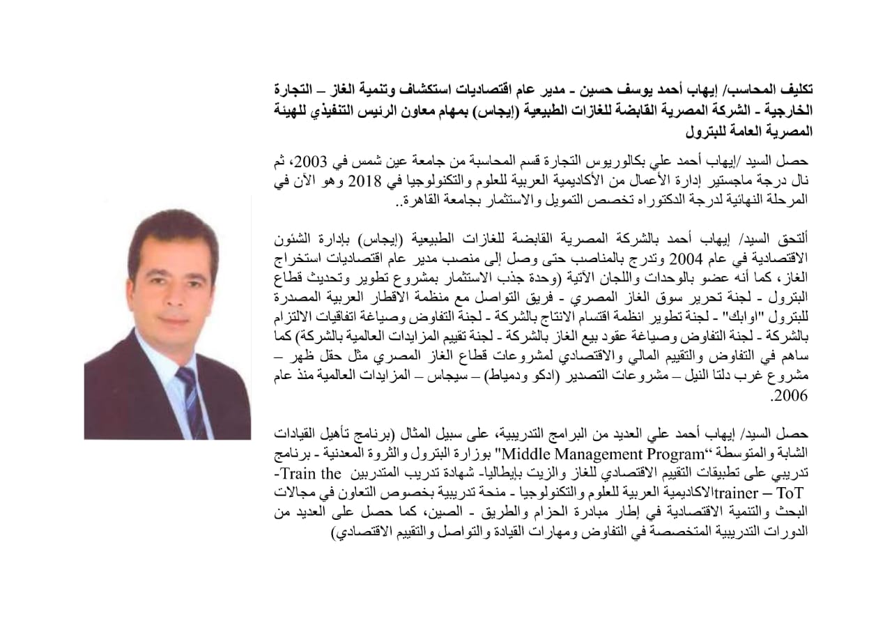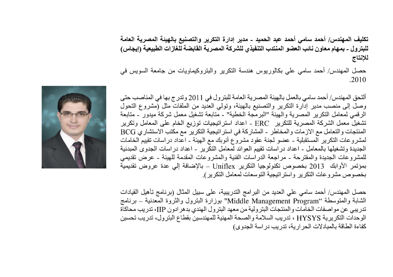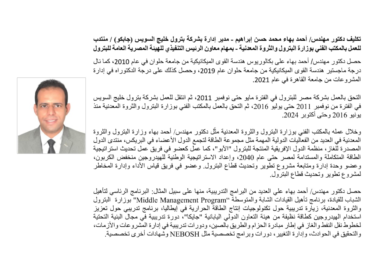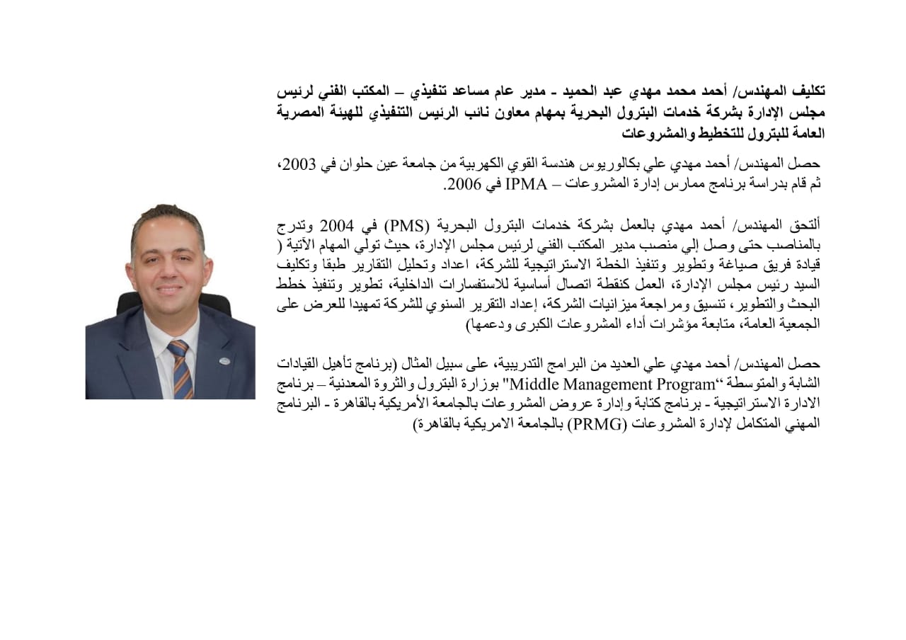 جاء ذلك استمرارا لسياسة الوزارة في الاستفادة من كوادرها البشرية من خريجي برنامج لقيادات الشابة والمتوسطة لإيجاد قاعدة قوية من القيادات قادرة على استكمال مسيرة التطوير والتحديث لما يتماشى مع استراتيجية مصر للتنمية المستدامة والشاملة، حيث أصدر الوزير قرارا بتكليف عدد 15 من خريجي برنامج القيادات الشابة والمتوسطة كدفعة أولى للقيام بمهام معاوني وكلاء الوزارة والرئيس التنفيذي للهيئة المصرية العامة للبترول ورؤساء مجالس الإدارات للشركات القابضة.