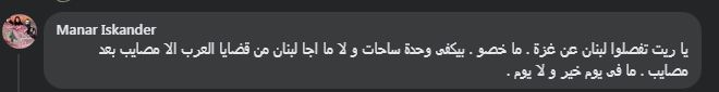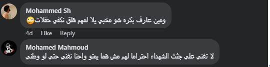 وسرعان هاجمها رواد مواقع التواصل الاجتماعي إذ جاءت التعليقات كالأتي، " يا ريت تفصلوا لبنان عن غزة ما خصو بيكفى وحدة ساحات و لا ما اجا لبنان من قضايا العرب الا مصايب بعد مصايب ما فى يوم خير و لا يوم "، " لا تغني علي جثث الشهداء احتراما لهم مش هما يمتو واحنا نغني حتي لو وطني"، " موسم الوطنيات مليء بالنقود ، تجارة رائعة"، " نفاق ومداهنة وسبيل لجمع المال"، " كفايه تمثيل على مأسي حقيقيه عايشين في عالم افتراضي"، " هلق انتوا بتحيوا (بتستغلوا) الاحزان والموت بالحفلات؟!".