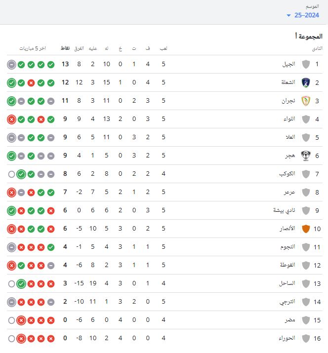 جدول ترتيب مسابقة دوري الدرجة الثانية السعودي