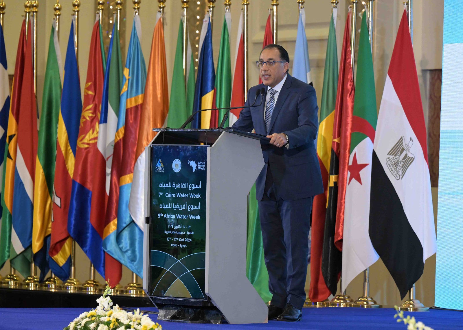 شارك الدكتور مصطفى مدبولي، رئيس مجلس الوزراء، صباح اليوم، في الجلسة الافتتاحية من فعاليات كل من "أسبوع القاهرة السابع للمياه"، و"أسبوع المياه الأفريقي التاسع"، المقامة تحت رعاية الرئيس عبد الفتاح السيسي، رئيس الجمهورية، بحضور عدد كبير من وزراء الحكومة، بجانب عدد من الوزراء الأفارقة، ورئيس المجلس العالمي للمياه، وعدد من سفراء الدول، ومجموعة من المسئولين رفيعي المستوى ممثلين لكل من: الاتحاد الأوروبي، والاتحاد الإفريقي، ومجلس وزراء المياه الأفارقة (الأمكاو)، ومنظمة الـ "فاو"، وبنك التنمية الإفريقي.