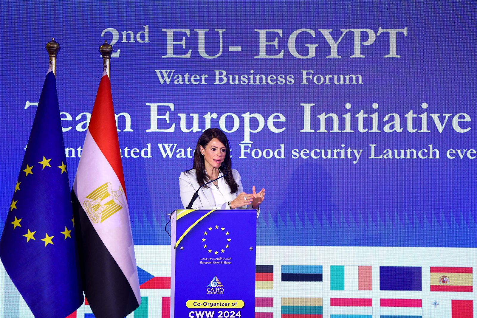 وذكرت أن تلك الجهود تأتي، لتتكامل مع مساهمات مؤسسات التمويل الدولية لدعم قطاع المياه والأمن الغذائي في مصر، من خلال توفير الدعم الفني والتمويل لمحطات تحلية المياه، وتدشين محطات معالجة المياه التي تحافظ على الموارد المائية وتتيحها للزراعة، مؤكدة أن المبادرات التي تم إطلاقها اليوم مع الاتحاد الأوروبي تؤكد الالتزام المشتركة بمواصلة الجهود لتعزيز العمل المناخي، ودعم التحول الأخضر، وتحقيق التنمية الاقتصادية.