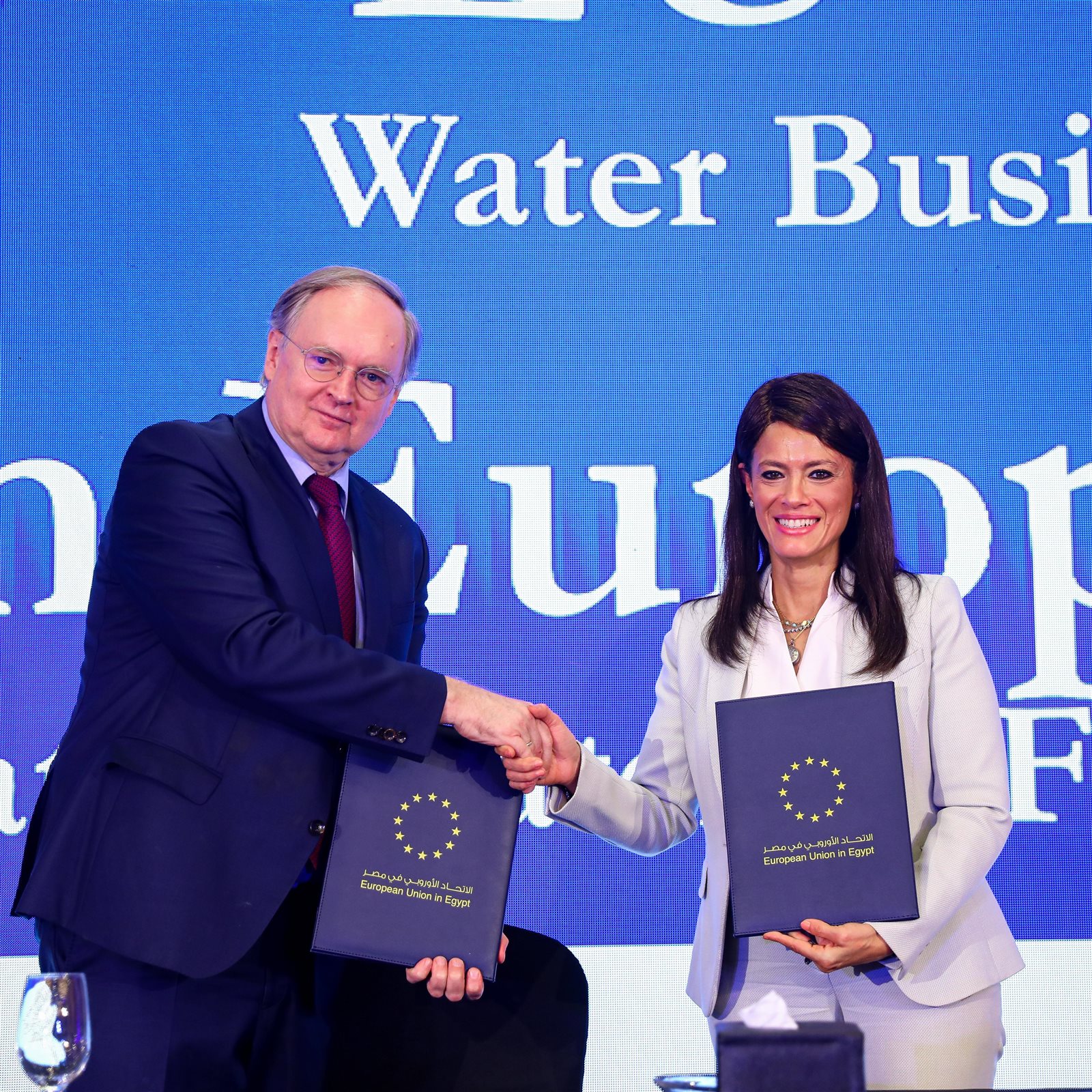 خلال فعاليات أسبوع القاهرة للمياه في نسخته السابعة، التي تنعقد تحت رعاية الرئيس عبد الفتاح السيسي، رئيس الجمهورية، وفي إطار الشراكة بين مصر والاتحاد الأوروبي تحت مظلة مبادرة «فريق أوروبا»، وقعت الدكتورة رانيا المشاط، وزيرة التخطيط والتنمية الاقتصادية والتعاون الدولي مع السفير كريستيان برجر، رئيس بعثة الاتحاد الأوروبي في مصر، مبادرة "المرفق الأوروبي الأخضر" بقيمة 7 ملايين يورو، وذلك بحضور الدكتور هاني سويلم، وزير الموارد المائية والري، والدكتورة فلوريكا فينك هويجر، مدير قسم البيئة في المفوضية الأوروبية.