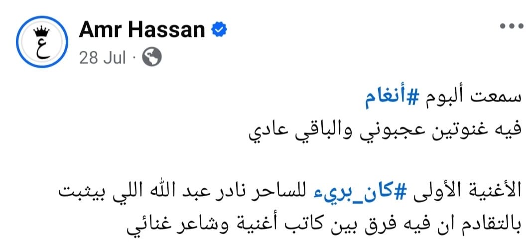 وقال الشاعر عمرو حسن: أغنية كان برئ للساحر نادر عبد الله، بتثبت بالتقادم إنه فيه فرق بين كاتب أغنية وشاعر غنائي، وعلق الناقد الفني أحمد السماحي: ما كتبه نادر عبد الله في ألبوم "تيجي نسيب"..محتاج موضوع لوحده، كما علق المذيع الشهير حاتم منير: إيه العبقرية دي، وعلقتا المستشارة الإعلامية ريم عادل: معظم إذا ما كانش كل الأغاني اللي بتنجح..وراها جندي مجهول إسمه نادر عبد الله.