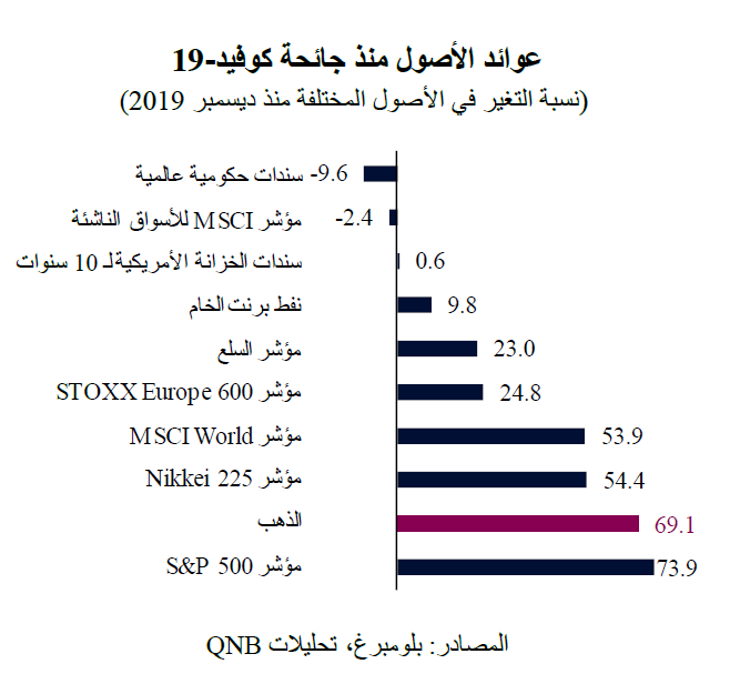 ومنذ الجائحة، تفوق الذهب على معظم الأصول الرئيسية الأخرى، بما في ذلك الأسهم العالمية والسندات الحكومية والسلع.