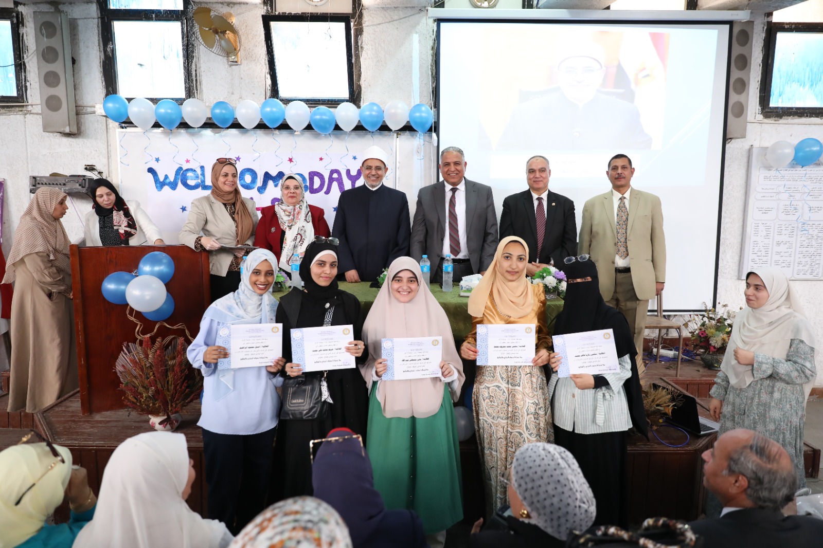 رئيس جامعة الأزهر يكرم المتفوقات دراسيًّا ويشيد ببرنامج محو الأمية