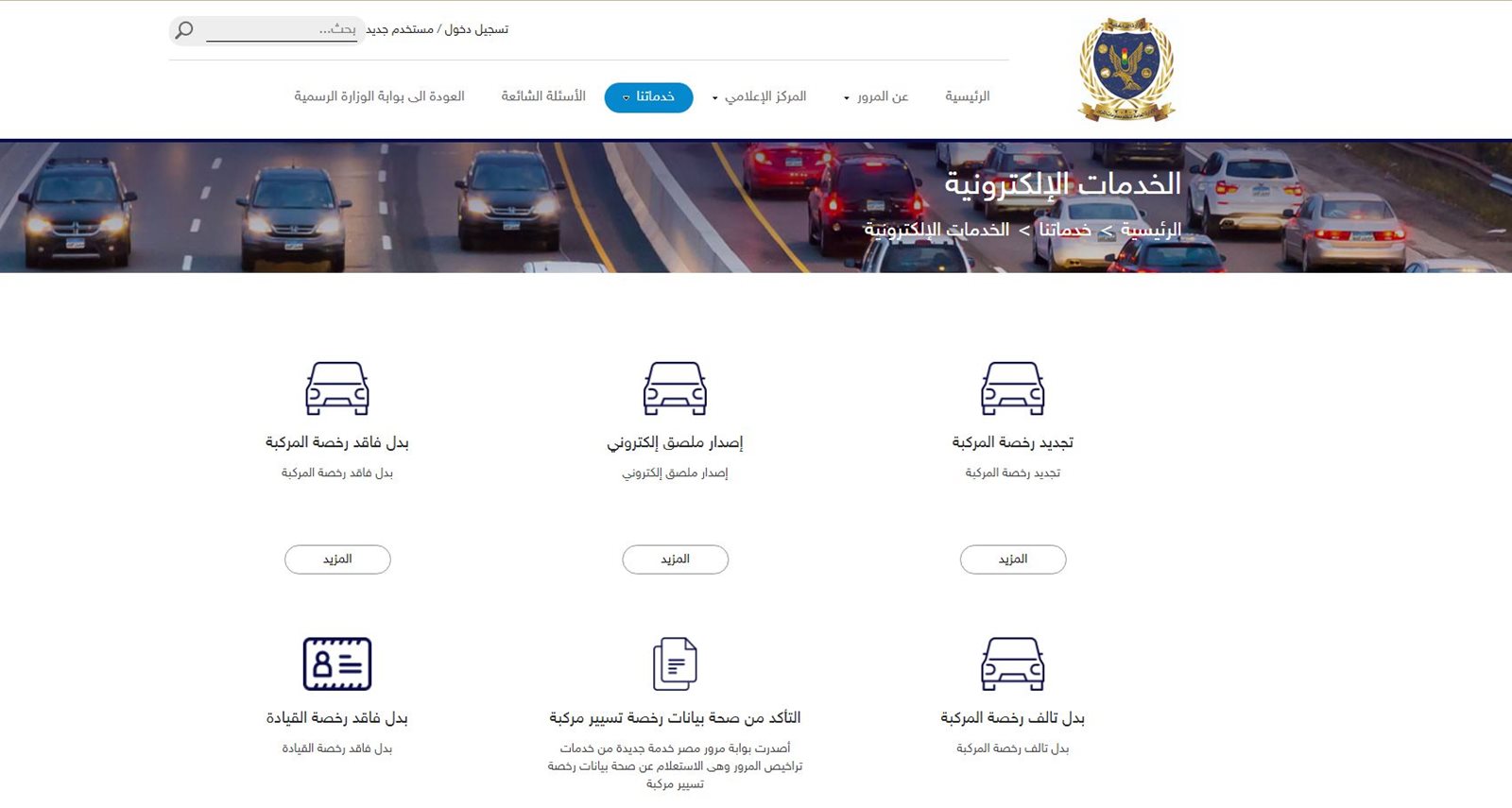 1) ادخل على الموقع الإلكتروني لـ بوابة المرور الإلكترونية، من هنا.
