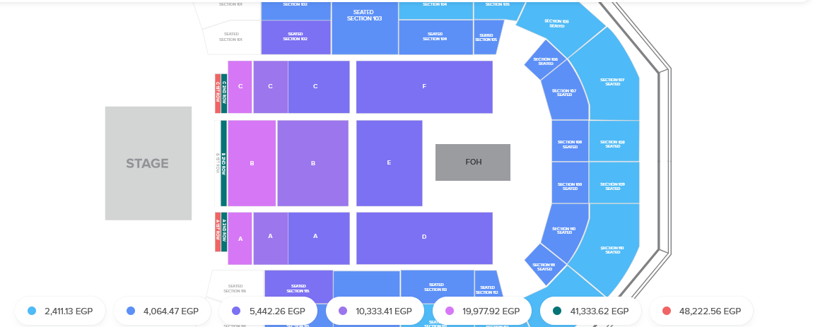تراوحت أسعار التذاكر بين 2400 - 48 ألف ويتم شراؤها إلكترونيا